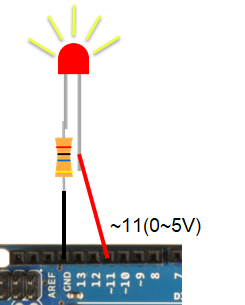 - 아두이노 우노에서 아날로그 출력 핀을 디지털 핀 영역에 존재한다.