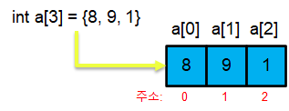 - int a[3]을 선언하면 3개의 공간을 가지는 a 배열을 생성한다는 것이다.
